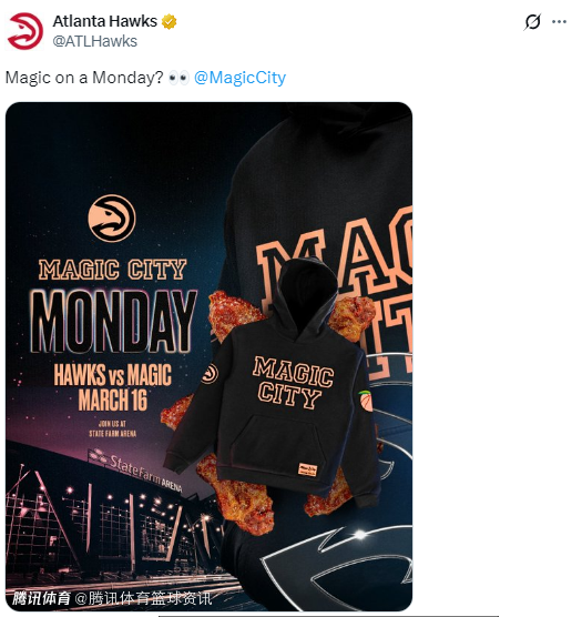 2026-02-27 06:40北京时间2月27日,老鹰队官方宣布,将在3月17日对阵魔术的比赛中,与当地知名的Magic City展开特别联名合作,这家夜店也被称作亚特兰大的标志性文化地标,向来是各界知名人士的打卡地。