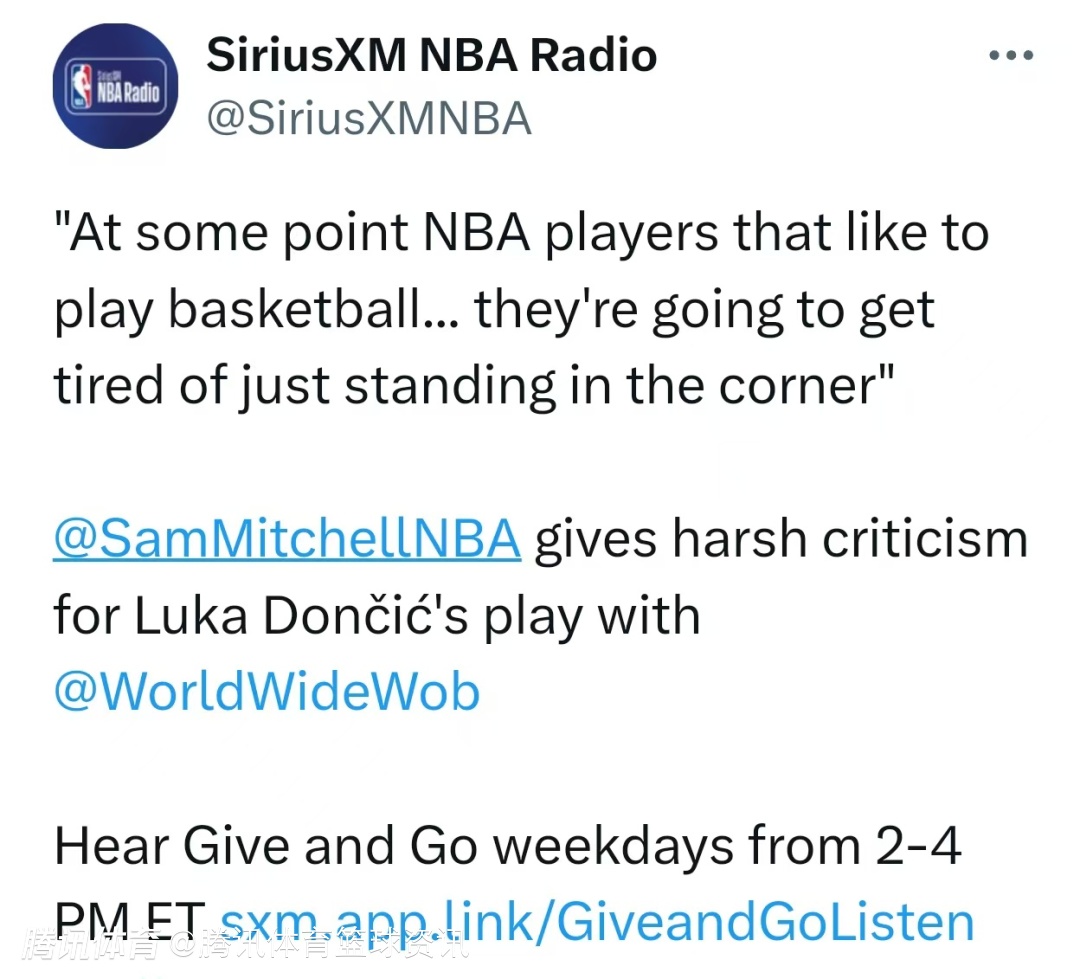 2026-02-27 08:30北京时间2月27日,前NBA球员、教练萨姆-米切尔近日在SiriusXM NBA电台节目中,公开批评湖人球星东契奇的打球方式,直言其打法存在明显问题,还会对队友产生负面影响。