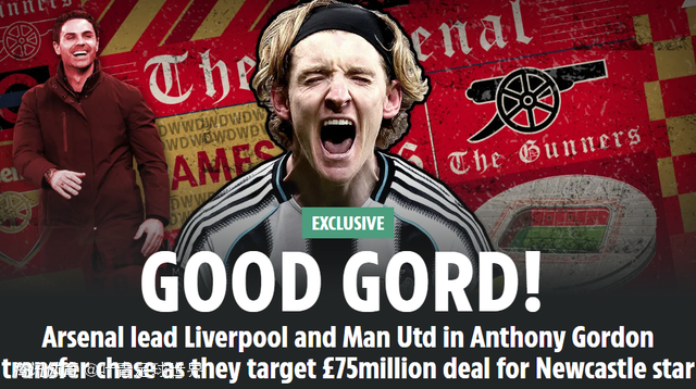 戈登出道于埃弗顿青训,2023年1月从埃弗顿加盟纽卡,转会费4000万英镑。《太阳报》指出,阿森纳主帅阿尔特塔,一直都很欣赏戈登。早在戈登效力埃弗顿期间,阿尔特塔就注意到他的才华和潜力。阿森纳希望在左边锋位置引援,戈登是最佳选择。同时,戈登还能客串中锋,能为球队的进攻提供更多的选择和变化。