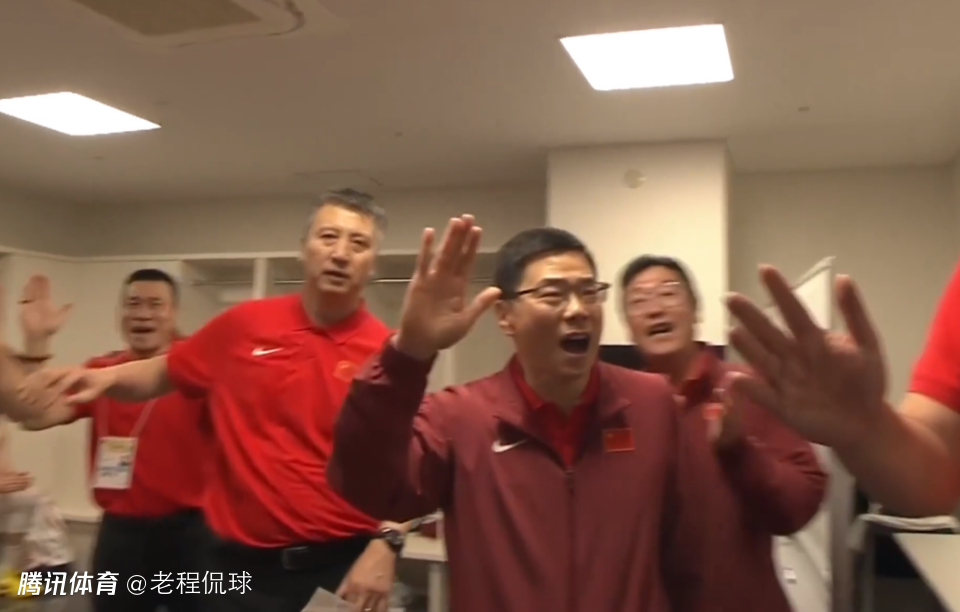 在中国男篮客场逆转日本队后,郭振明早早在更衣室等待球员们回来。当球员们一个个走回更衣室,郭振明持续激情呐喊,和大家伙一起享受喜悦。