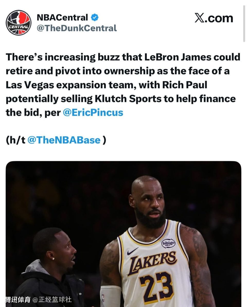 2026-02-28 07:10北京时间2月28日,NBA常规赛继续进行。在今天早些时候,詹姆斯的经纪人里奇-保罗在节目中回应了外界的传言,他直言自己并没有和詹姆斯一起购买拉斯维加斯新球队的打算,并称自己没有足够的钱。