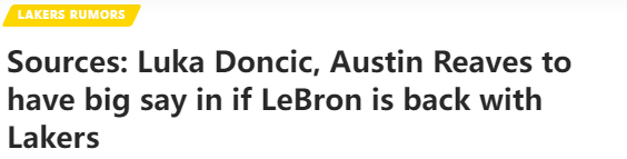 Ashish Mathur撰文报道,据消息人士透露,湖人准备告别詹姆斯时代,并围绕卢卡-东契奇和奥斯汀-里夫斯进行建队。如果詹姆斯今夏不选择退役,他仍有可能回到洛杉矶,因为东契奇和里夫斯都希望他回归。