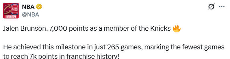 尼克斯生涯7000分!布伦森迎新里程碑 仅用265场队史最快