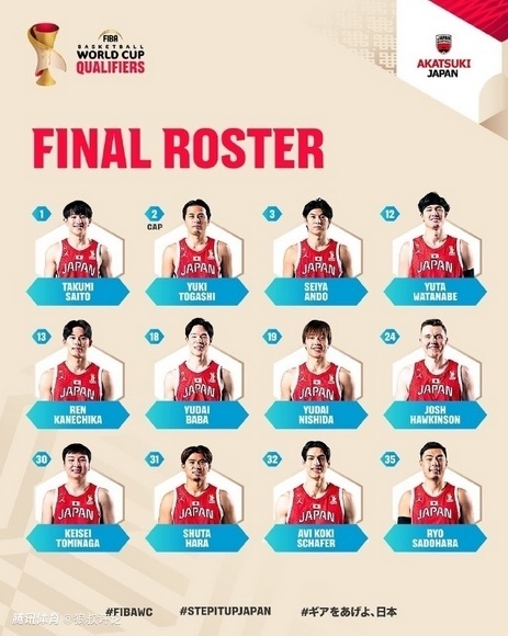 2026-02-28 19:40北京时间2月28日,男篮世预赛窗口期,日本男篮迎战韩国男篮赛前,日本男篮公布了与韩国队的12人名单,替换了两人,霍金森回归换了科克,佐土原辽替换渡边飞勇。