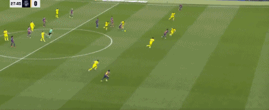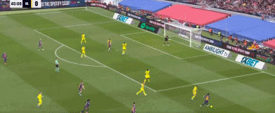 第27分钟,费尔明中场斜传,亚马尔禁区右侧单刀球推射破门,1-0。