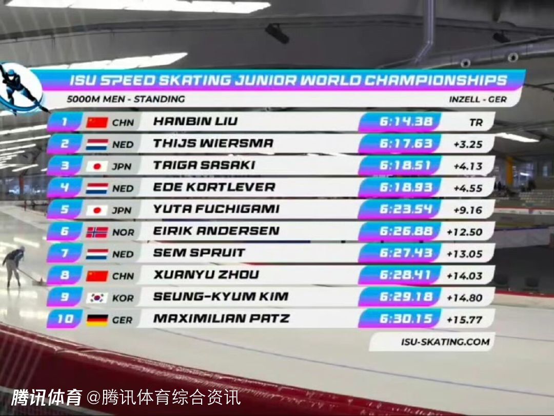 速滑世青赛:刘瀚彬刷新个人纪录夺男子5000米金牌 太智恩周天宇另两项摘铜
