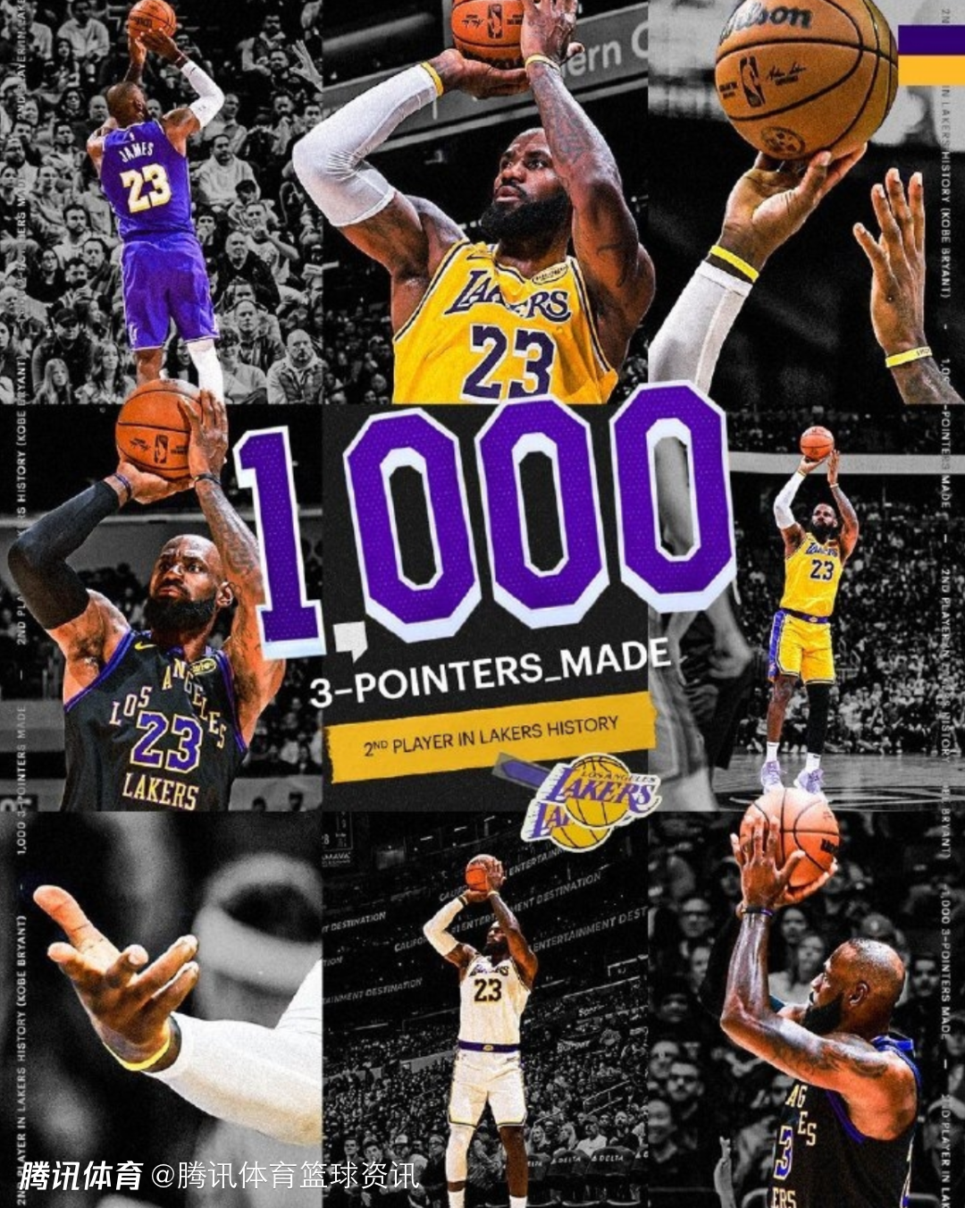 里程碑!詹姆斯湖人生涯三分命中数达1000个 队史仅次于科比