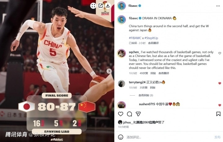 上一场,中国男篮逆转日本男篮的赛后,FIBA官方一度争议发文点评:“中国男篮从日本‘偷’走一场胜利”引发评论区翻车,目前,FIBA官方已经将文案修改为了“中国男篮在下半场翻盘,拿走了胜利”。