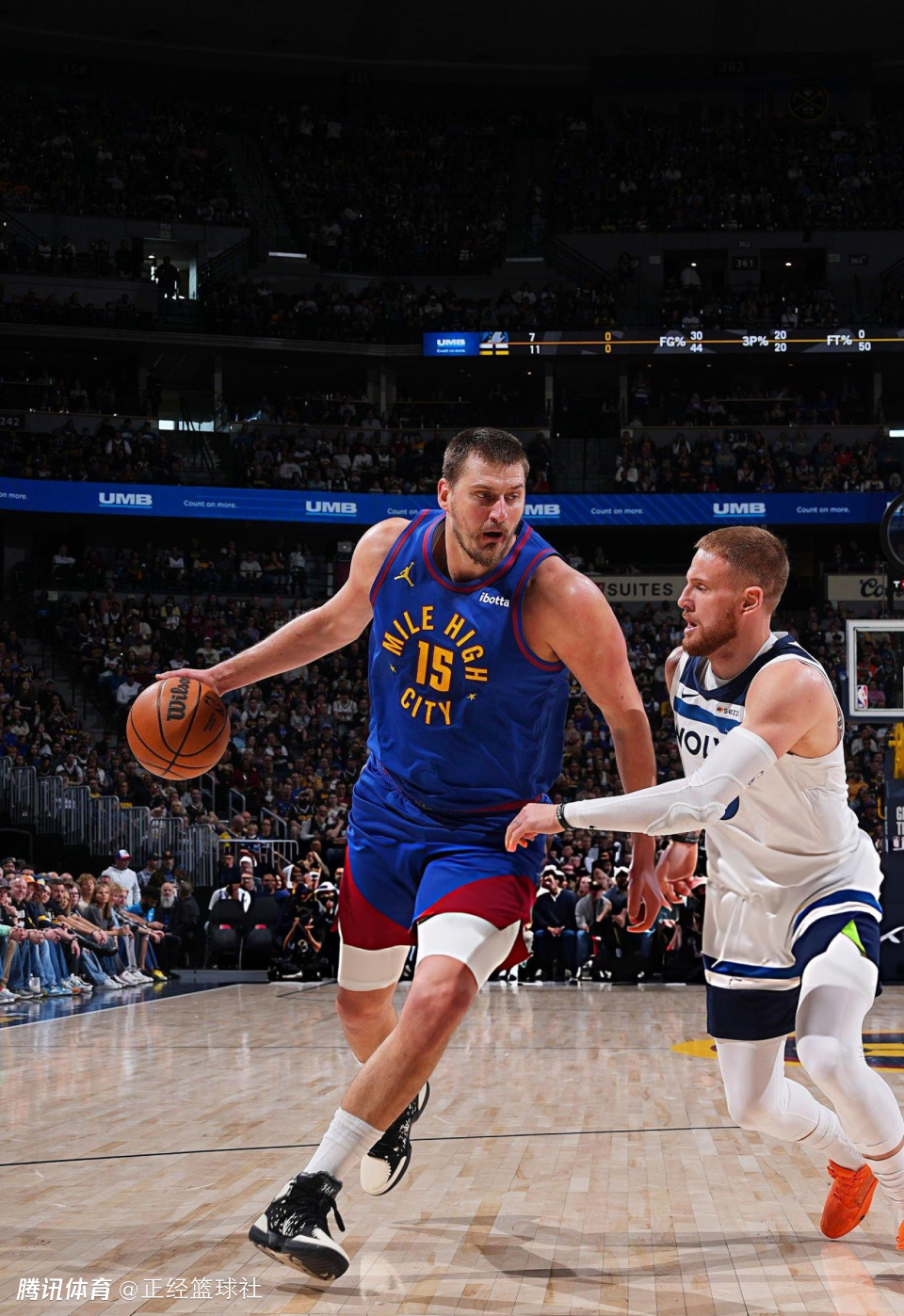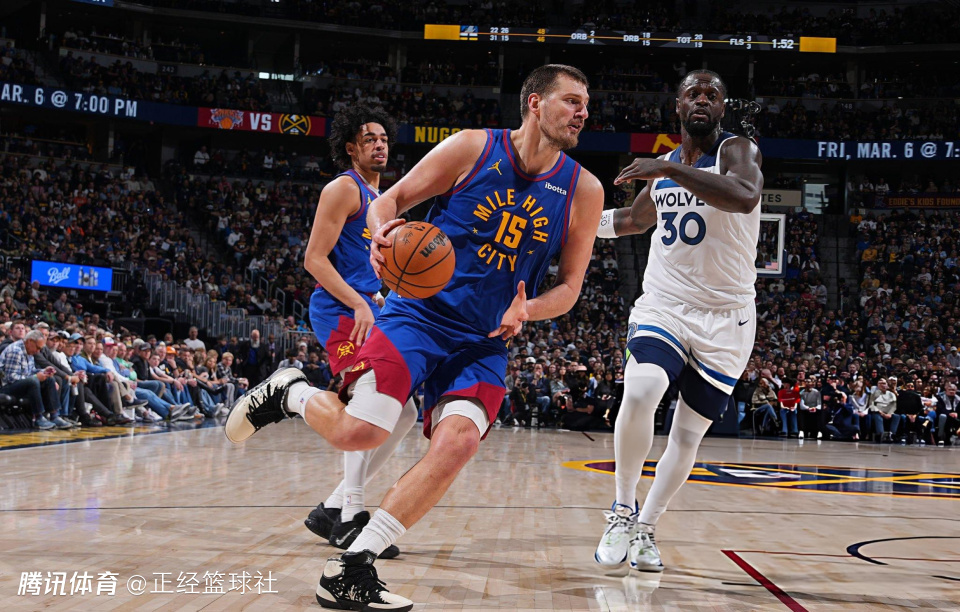 第三节比赛开始后,约基奇找回状态,他连续中投得手,并且在右侧45度命中三分,连续砍分带队缩小分差。森林狼队稳住阵脚之后,约基奇再度爆发,他连续强攻篮下得手,几乎凭借一己之力支撑球队,在这节比赛中,约基奇一人独得17分6篮板3助攻!