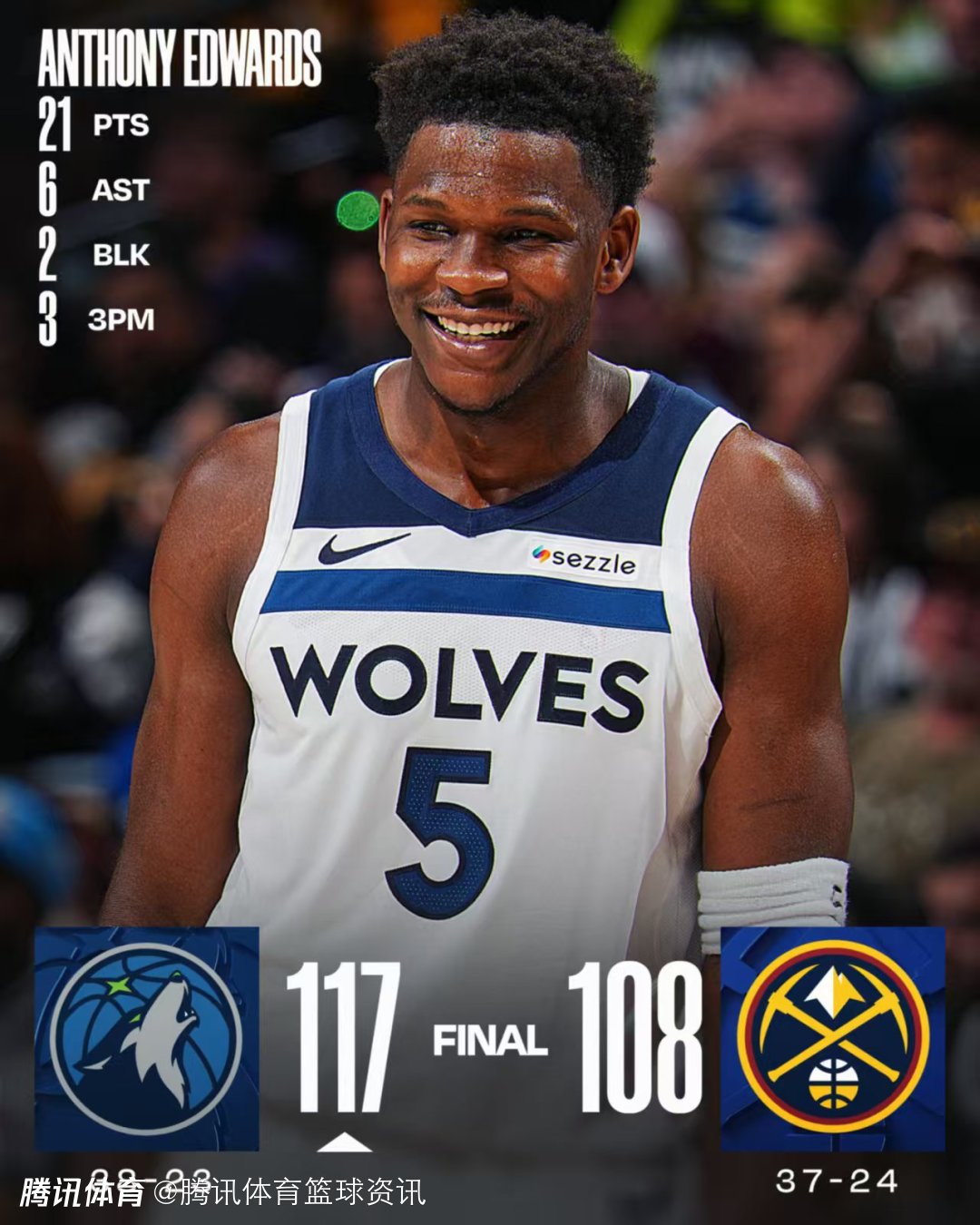 2026-03-02 08:20北京时间3月2日,NBA常规赛继续进行,森林狼117-108战胜掘金。本场比赛中,森林狼队球星爱德华兹出战39分钟,投篮19中9,三分球9中3,罚球2中0,得到21分3篮板6助攻1抢断2盖帽。赛后,他接受媒体采访。