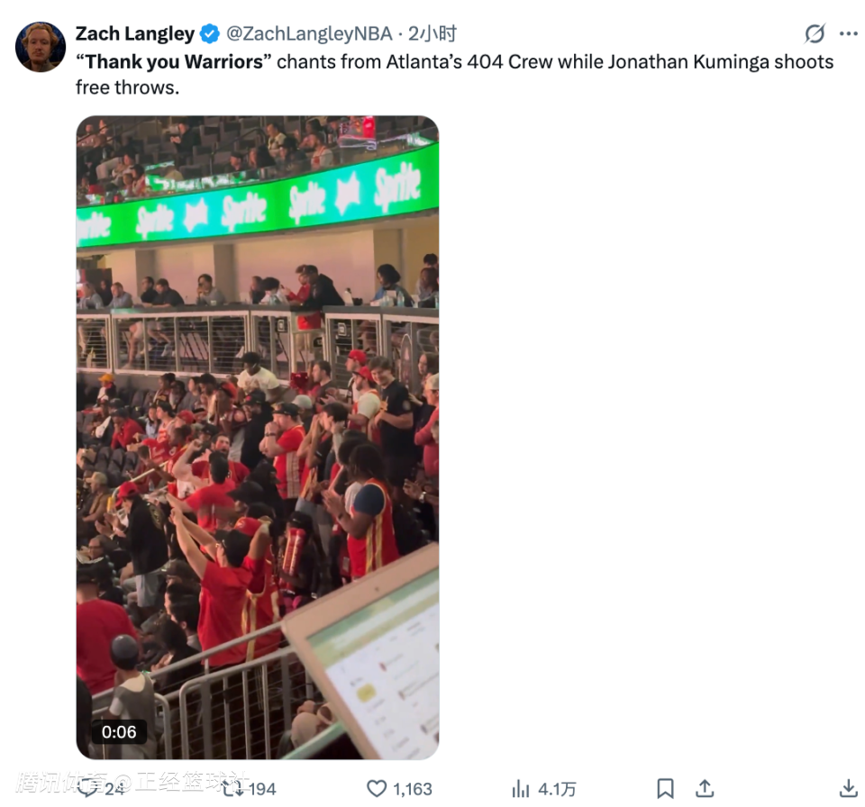 老鹰球迷高喊谢谢勇士!库明加三战64+23+10 反观波津连续五场缺席