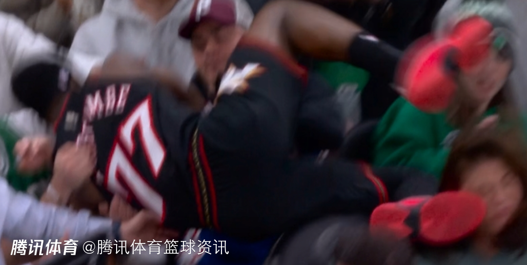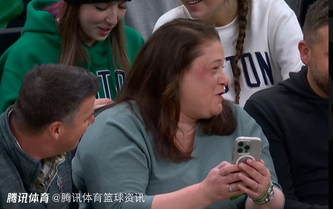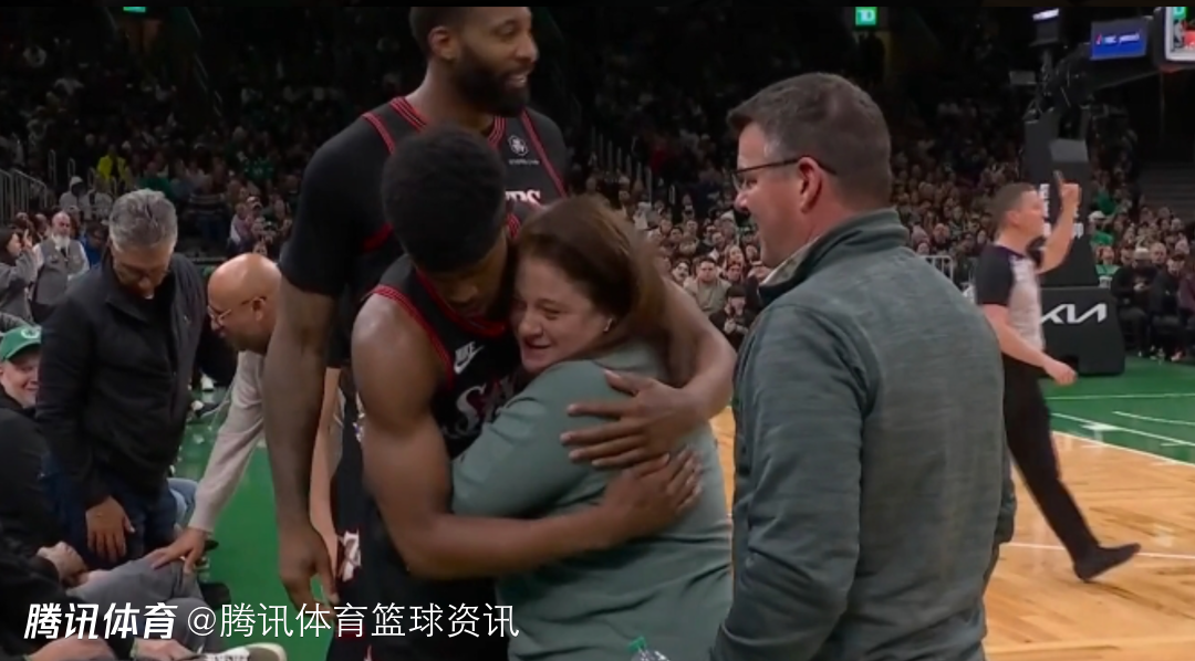 76人新秀埃奇库姆在救球时,直接扑向观众席,结果后脚跟不小心踢到了一名女球迷脸上。虽然被埃奇库姆踢到,且脸上已经明显有淤青,但这位女球迷还是面带微笑,而之后埃奇库姆也赶紧上来致歉,并且为其送上拥抱。