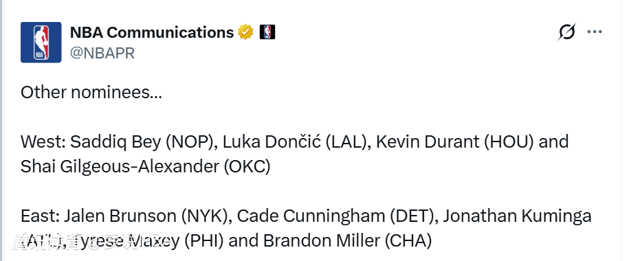 NBA官宣周最佳:华子当选杜伦首次获奖 东契奇杜兰特库明加获提名