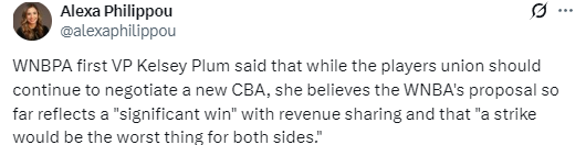 普拉姆:能让WNBA同意实行收入分成已是重大胜利 若停摆对双方都很糟糕