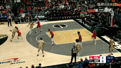 比赛开始还剩10分49秒时,申京突破勾手投篮命中,为火箭先拔头筹。随后在第一节还剩10分21秒至还剩8分4秒时,约翰逊、乔治和库利巴利连续命中三记三分,将比分从4:3反超到6:11,奇才首节外线火力全开并在零失误的前提下,依靠莱利罚球和沃特金斯急停跳投,首节以30:26领先结束。