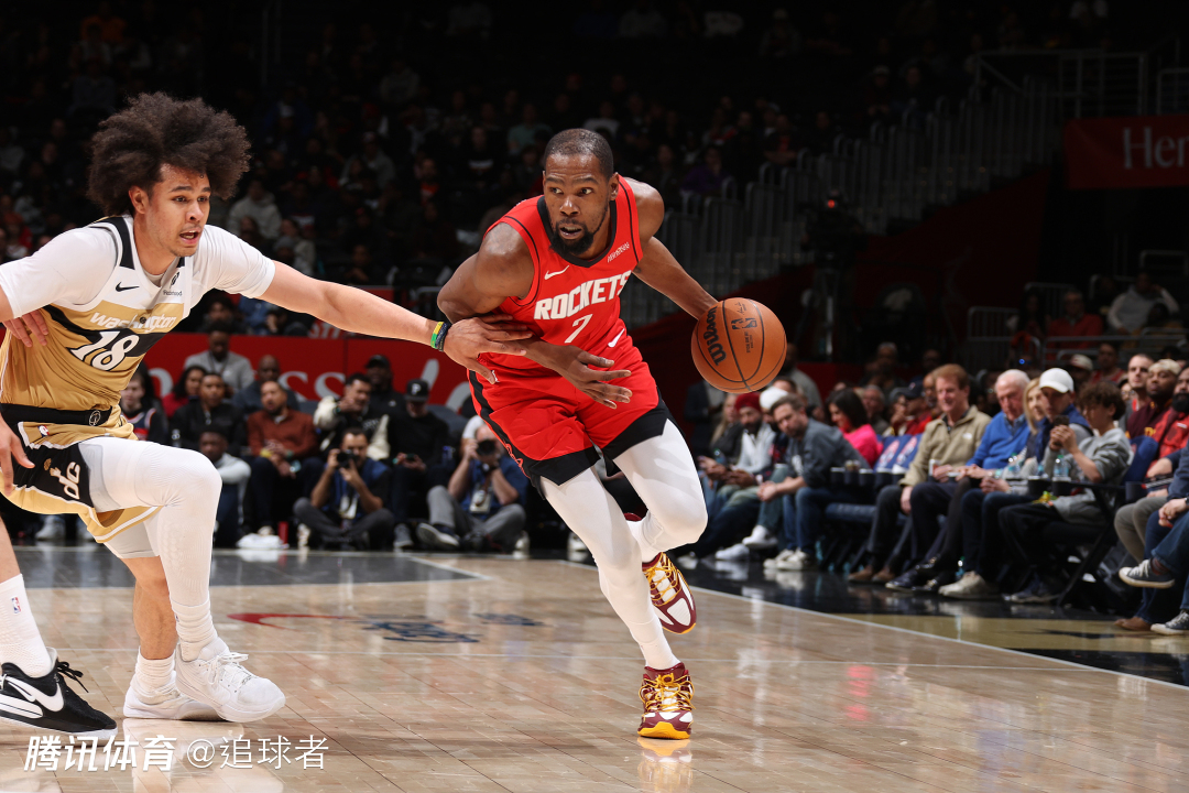 上半场杜兰特5投3中拿到14分1篮板1助攻2次盖帽;易边再战,火箭一波9-0拉开分差,之后奇才反扑追到7分,火箭立即回应10-0进攻高潮,奇才再次追分,杜兰特连续中投得分,三节打完火箭94-80领先14分,这一节杜兰特9投4中独砍11分。