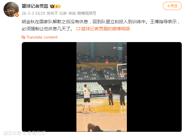 所以,回国后的胡金秋急需休息,而不是任何的训练。在主力后卫孙铭徽再次受伤后,广厦男篮本赛季若想力争卫冕,也需要保护好胡金秋等核心球员。