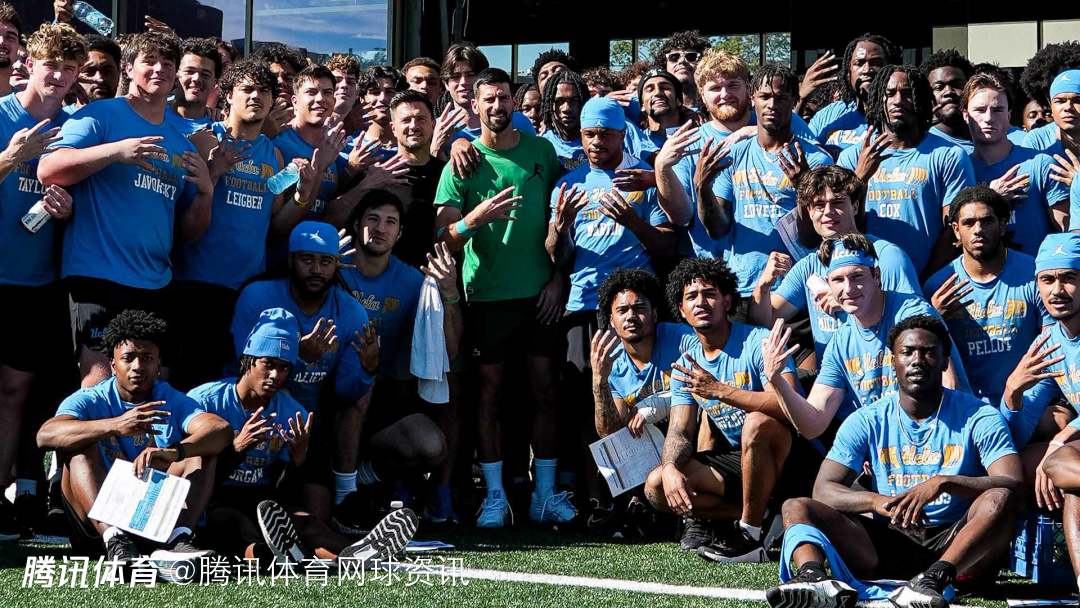 2026-03-03 20:20德约科维奇在前往印第安维尔斯出战年度首项大师赛之前,与加州大学洛杉矶分校(UCLA)橄榄球队进行了交流。