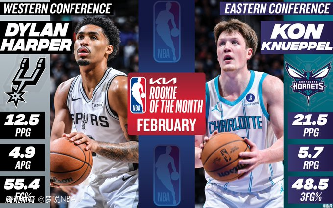 但弗拉格因脚伤在2月大部分时间缺阵,马刺后卫迪伦-哈珀成为本赛季首位非杜克系的月最佳新秀,斩获西部月最佳新秀。
