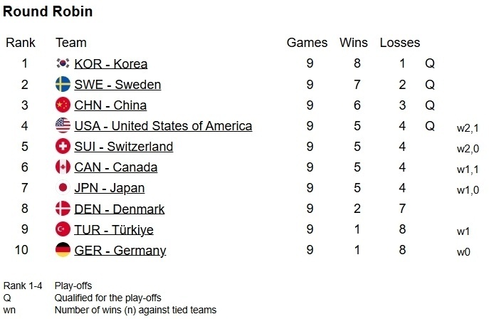 循环赛里,由王卓仪率领的这支中国青年女队以6胜3负排在第三,而约翰逊率领的美国女队则与瑞士、加拿大、日本都是5胜4负,但美国队靠着胜负关系以及DSC优势,有惊无险胜出,排名第四晋级。