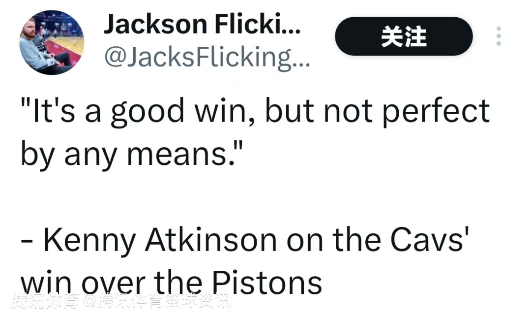 关于球队战胜活塞,阿特金森说道:“这是一场不错的胜利,但绝谈不上完美。”