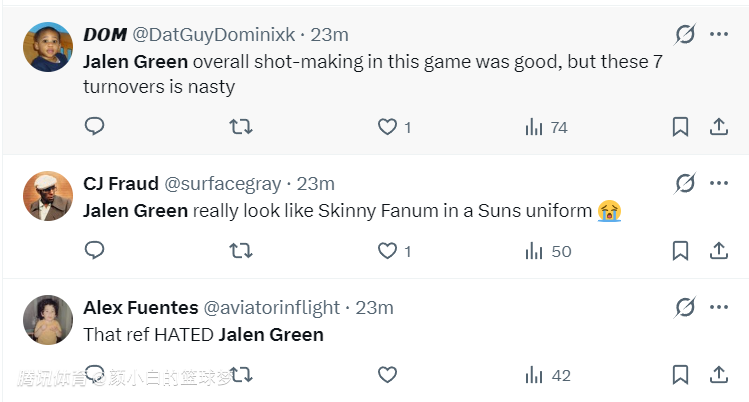 很多太阳球迷开始炮轰格林:他这场比赛愚蠢的失误让自己无法拿到25分以上;