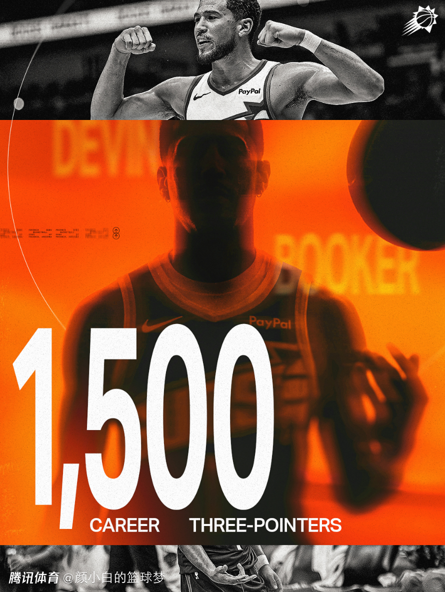 此役布克完成常规赛1500三分大关,他在720场或更少的比赛中拿到17000分+1500三分历史第三,比肩库里、利拉德。布克全场比赛19中6,三分9中4仅拿到17分6助攻4篮板3失误。