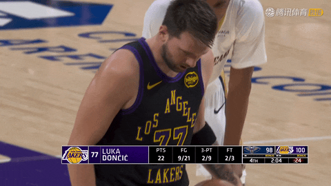 还剩1分34秒时,斯马特命中三分扩大湖人优势;还剩1分钟时,东契奇再中远投,将比分拉开。