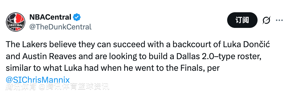 2026-03-05 01:20北京时间3月5日,据美记Chris Mannix报道,湖人队认为东契奇和里夫斯的后场组合能够取得成功,并计划围绕他们打造一套类似独行侠2.0版本的阵容——类似于东契奇当年打进总决赛时的球队配置。