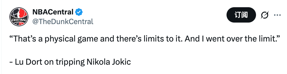 多尔特谈绊倒约基奇:那个动作我确实越界了 但我不认为自己打球脏
