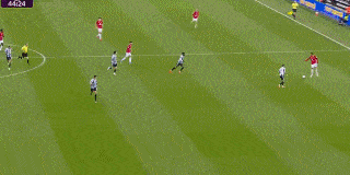 第48分钟,戈登左路拿球内切到禁区,被B费放倒裁判判罚点球,戈登主罚点球球进,纽卡1-0曼联。