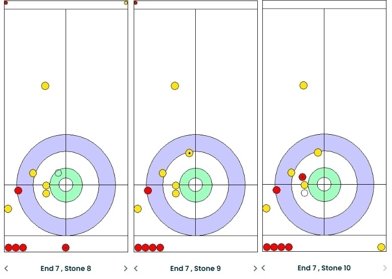 第三局:杨金桥的打甩、抢旋和占位三连,且都没有把壶打出大本营,中国形成3分牵制;小川亚希求稳没有进营,结果王蒙艺高人胆大,旋壶入营助中国一举拿下4分。