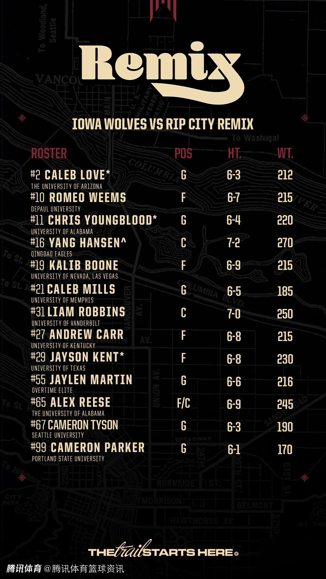 在混音上一场对阵对阵爱荷华狼的比赛中,杨瀚森没有出战。据球队方面透露,他此前的中背部酸痛仍有不适,加之长途返程,出于恢复考虑所以不会出战。