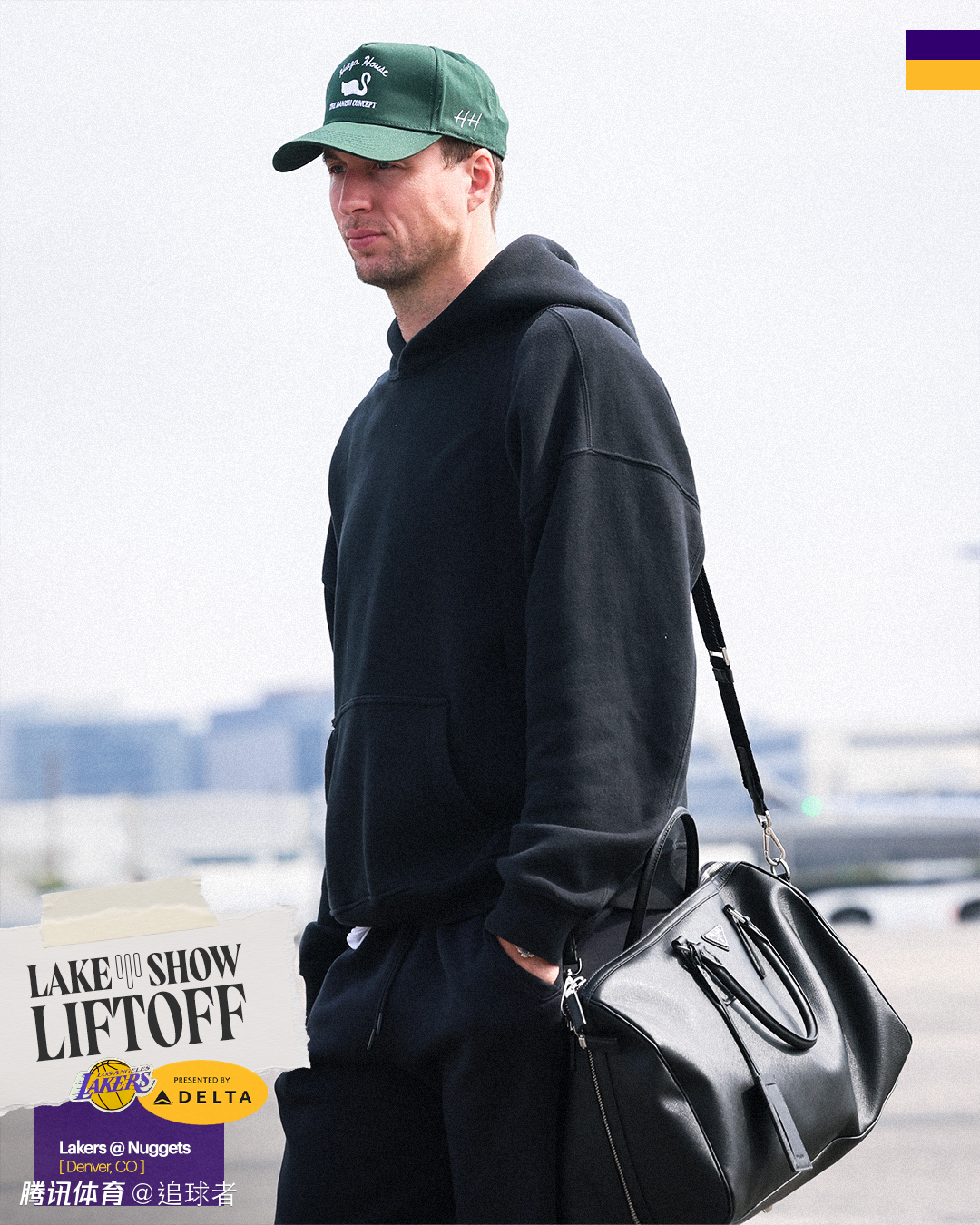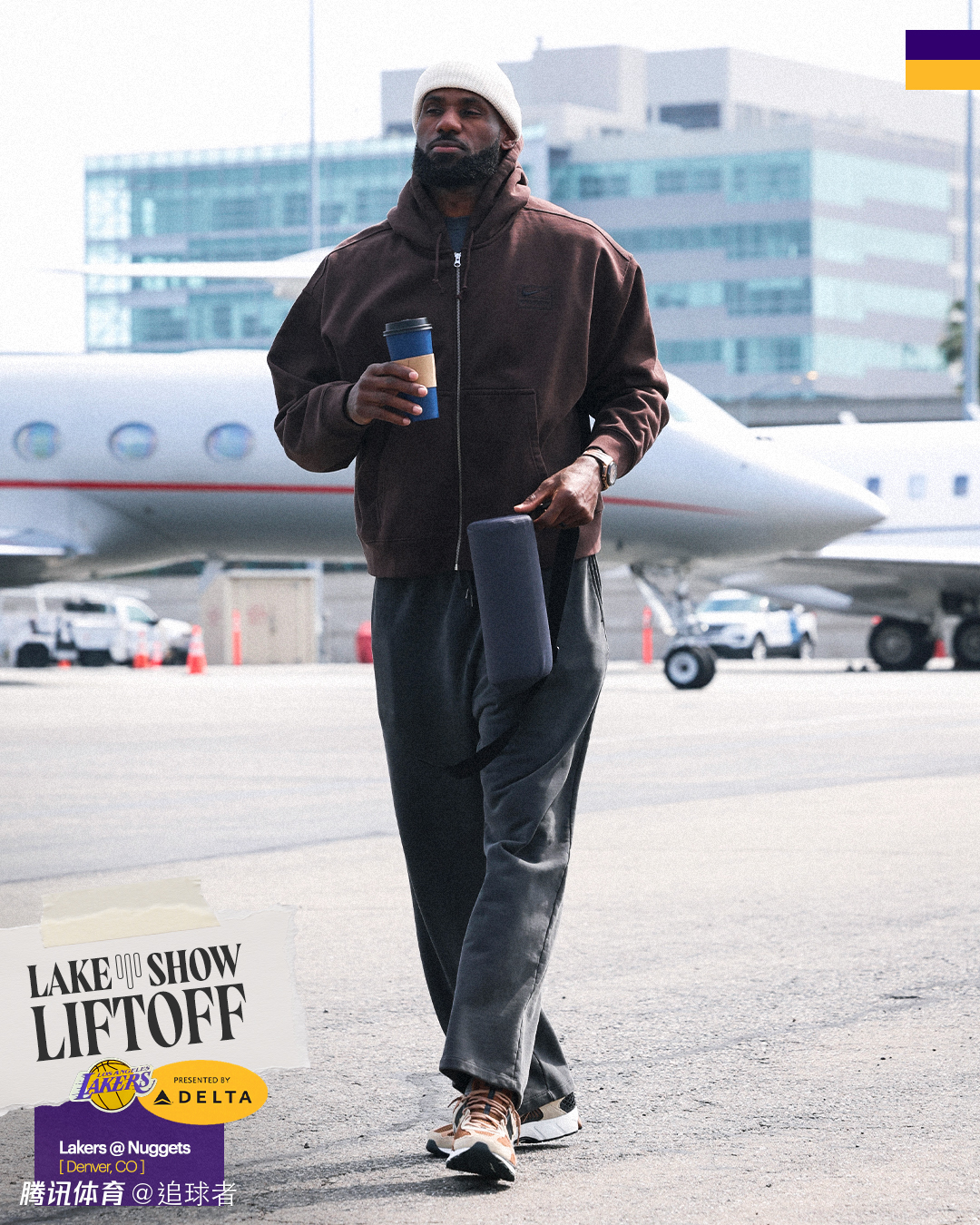 目前湖人取得三连胜,詹姆斯、东契奇和里夫斯三大核心带领球队飞往丹佛,他们将在明天大战掘金;41岁的詹姆斯戴着白色针织帽、身穿深色连帽卫衣并且提着保温杯,明日老詹只要再进3球,他就会超越贾巴尔成为NBA历史进球王,再次拥有一项历史第一纪录。