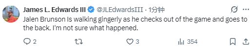 根据RotoWire报道,布伦森的这次受伤很可能是因为他尝试制造对手进攻犯规所致。而此前他还在一次上篮过程中与卡森-华莱士发生了碰撞。