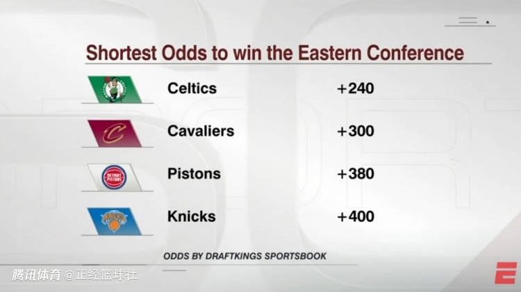 随着塔图姆复出在即,美媒第一时间更新了本赛季东部冠军赔率,凯尔特人成功力压骑士,升至东部第一,目前球队夺冠赔率为+240。具体排名为:凯尔特人(+240)、骑士(+300)、活塞(+380)、尼克斯(+400),凯尔特人凭借塔图姆的回归,成为东部夺冠最大热门。