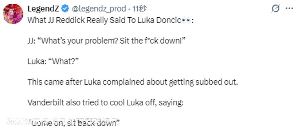2026-03-06 09:40北京时间3月6日,唇语专家LegendZ更新个人社交媒体,还原了此前湖人队与勇士队比赛中JJ-雷迪克与东契奇之间发生的争执。由于东契奇被换下时甩手,他被雷迪克追着狂喷,而范德比尔特则机智圆场。