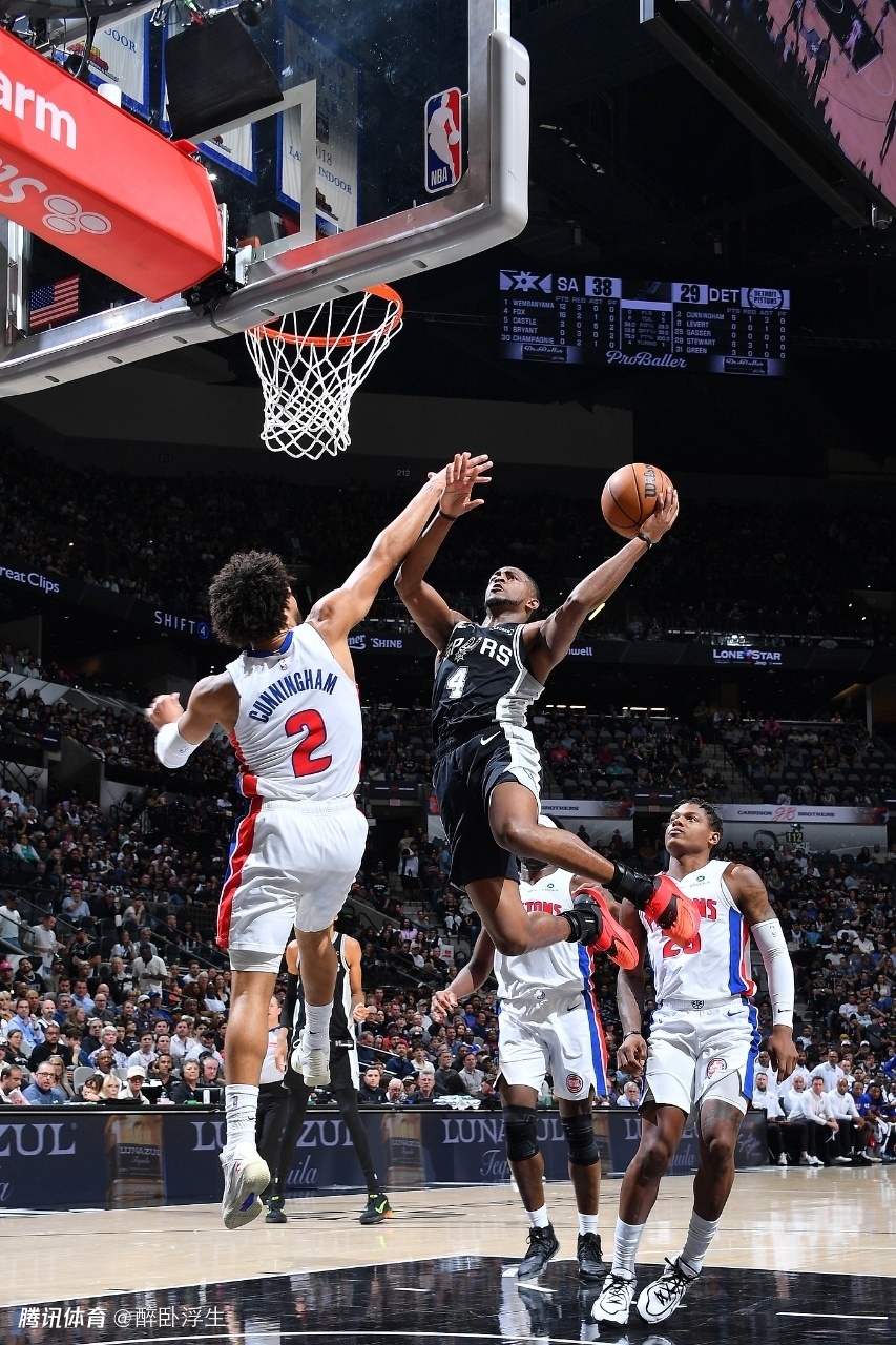 文班38+16+5帽历史第二马刺大胜活塞 福克斯29分坎宁安26+8