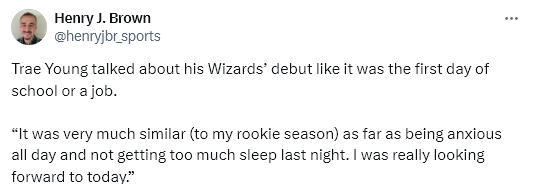 特雷-杨:完成奇才生涯首秀感觉很棒 几个月没打球要努力找回节奏