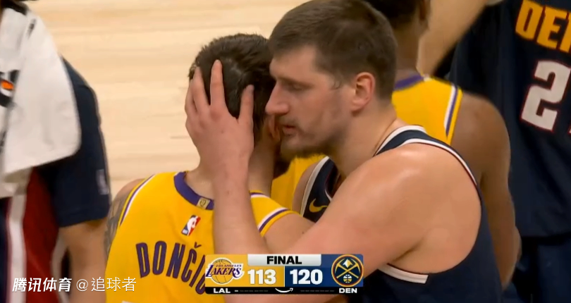 赛后詹姆斯第一时间离场返回更衣室,东契奇与约基奇、穆雷等人拥抱致意后失落离场。