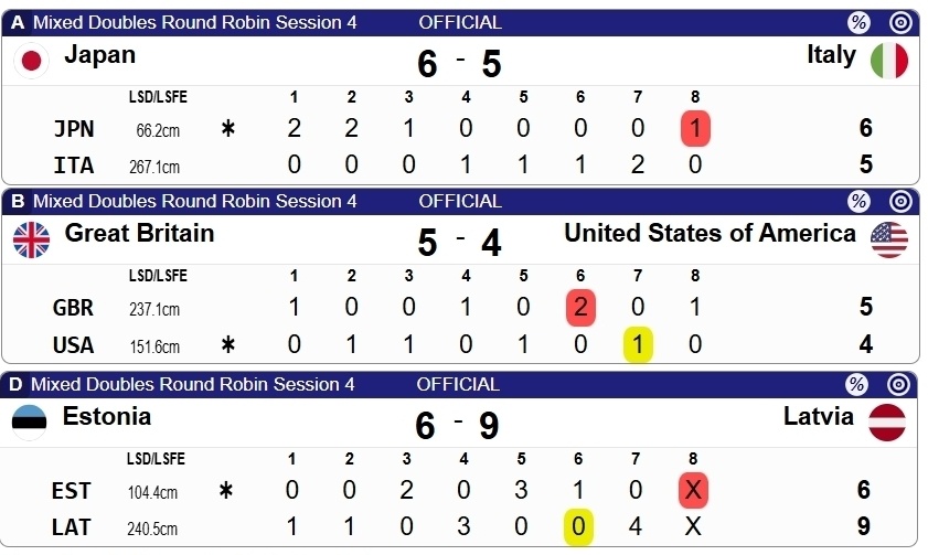 本轮另外三场较量里,日本6-5意大利、英国5-4美国、爱沙尼亚6-9拉脱维亚。
