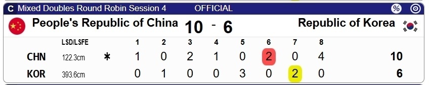 就这样,靠着第八局的优异表现,中国以10-6拿下了前七局绝对称得上势均力敌的韩国队,迎来四连胜。