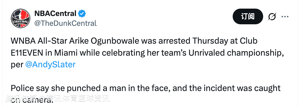 2026-03-07 00:50北京时间3月7日,据美记Andy Slater报道,WNBA全明星球员阿里克-奥贡鲍尔当地时间周四在迈阿密E11EVEN夜店,庆祝自己球队夺得Unrivaled联赛冠军时被捕。