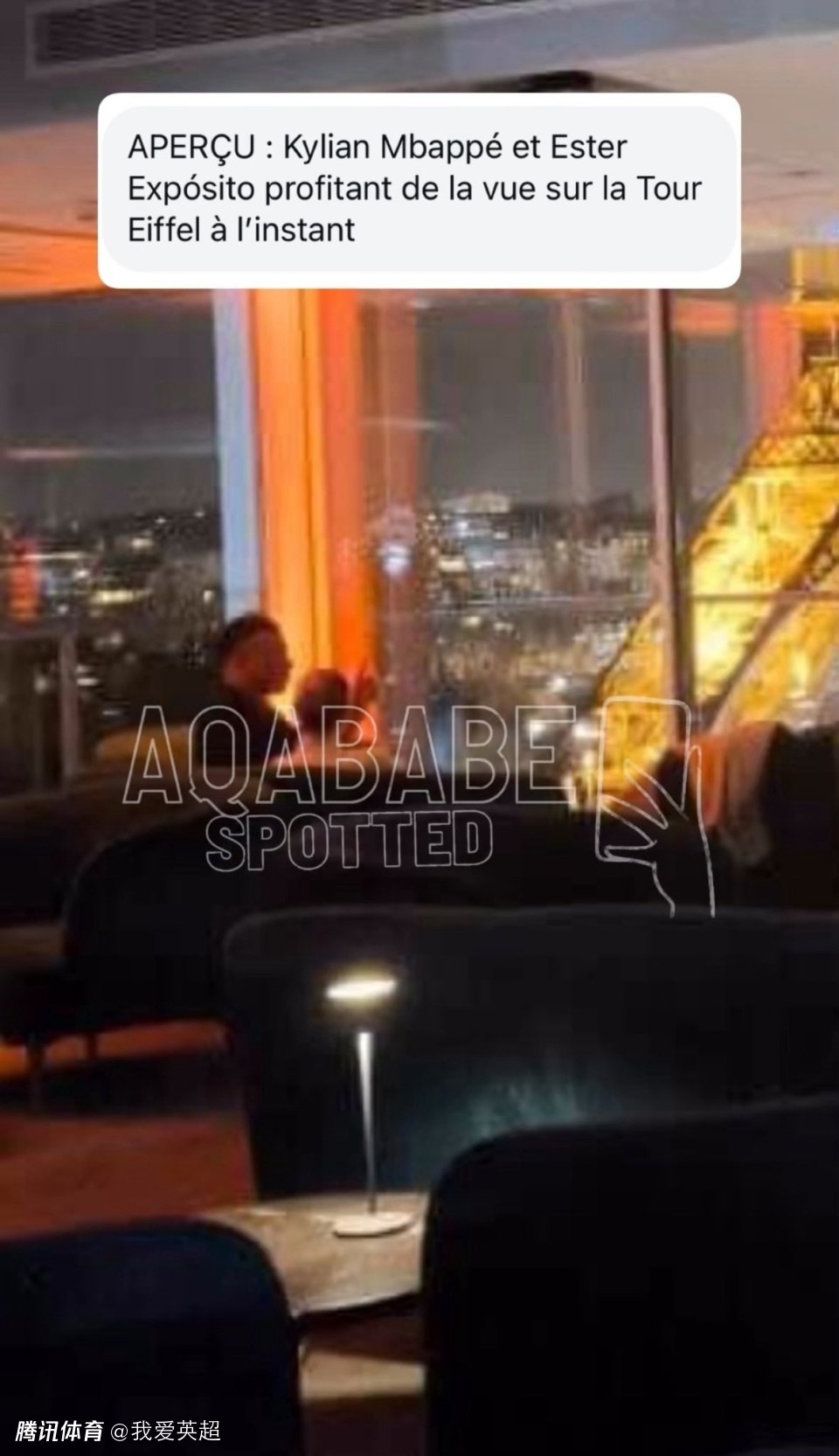 随后,该博主还在回复中晒出了一张爆料图片,疑似为姆巴佩和爱珀斯托在巴黎埃菲尔铁塔附近的餐厅幽会照片。