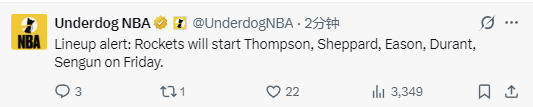 2026-03-07 08:50北京时间3月7日,NBA常规赛继续进行,火箭队对阵开拓者队。赛前,火箭队宣布,小贾巴里-史密斯因脚踝伤势将缺席本场比赛。乌度卡也调整首发阵容,重新启用谢泼德,让他联手伊森、杜兰特、申京和阿门-汤普森首发出战。开拓者队的首发阵容为克林根、亨德森、格兰特、卡马拉、霍勒迪。