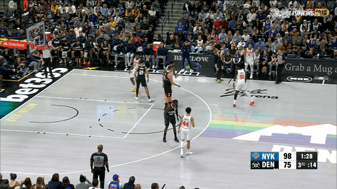 易边再战还剩10分33秒时,阿奴诺比命中三分,拉开尼克斯外线攻势;还剩9分14秒和8分03秒时,唐斯与哈特相继投中三分,尼克斯在第三节打出从65-54到105-77的40-25攻势,将领先优势从11分扩大到28分。第三节压哨时,约基奇投篮命中,将比分改写为尼克斯105-80掘金。