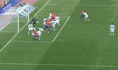 第73分钟,克雷桑左路推射被挡,刘洋跟进大力抽射被韩镕泽挡出。