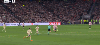 第68分钟,佩德里左路内切斜传,亚马尔突入禁区右肋兜射,球击中远侧立柱弹入门内,1-0。