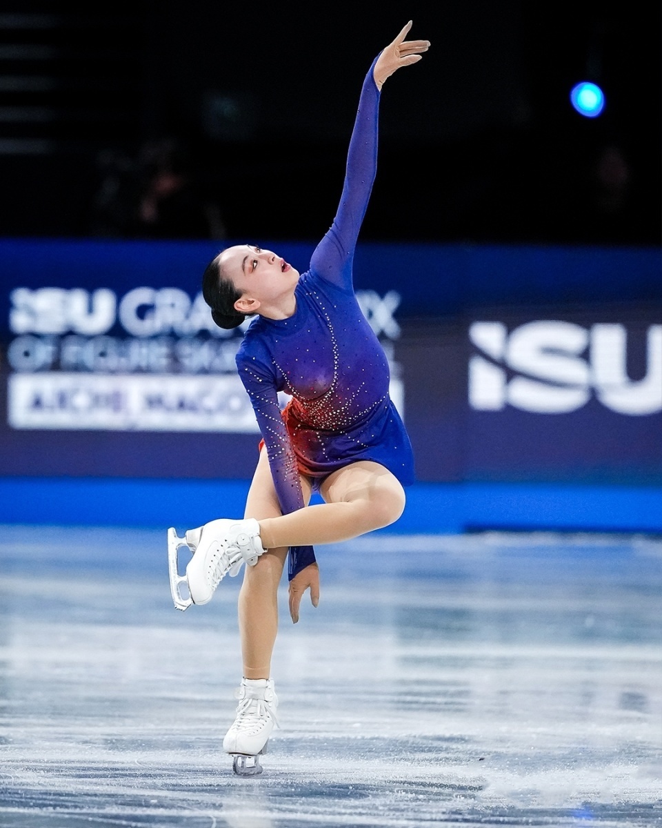 跳进换足联合旋转变刃时有晃动,被扣了执行三连跳的成功完成,让比赛悬念提前终结。最后的勾手三周采用上双手难度姿态,编排步伐组合丰富,最后的两组旋转充分展现了强大的速度保持和姿态控制能力!