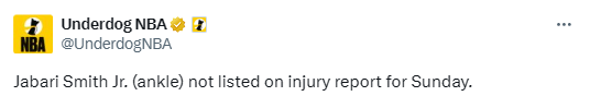 火箭利好!小贾巴里-史密斯伤愈复出 明日可以出战马刺